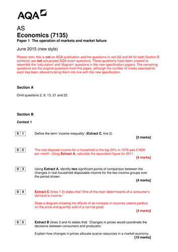 Aqa As Economics New Spec Additional Unit 1 Past Paper June 2015 Re Worked Teaching Resources
